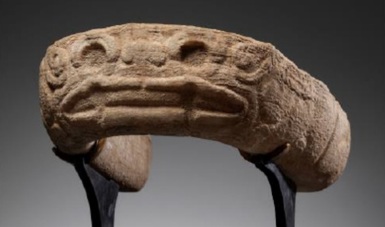 La pieza arqueológica de origen mexicano, definida y protegida de conformidad con nuestra Ley Federal sobre Monumentos y Zonas Arqueológicos, Artísticos e Históricos, se trata de un yugo elaborado en roca que representa a un ser fantástico, realizado en la costa del Golfo durante el periodo Clásico mesoamericano (400-900 d. C.), representativo del Clásico Central veracruzano.